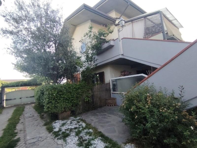 MASSA VIA ROMANA VENDESI PORZIONE DI BIFAMILIARE DI AMPIA METRATURA E CON OTTIMA ESPOSIZIONE, GODE DEL SOLE TUTTO IL GIORNO E COMPOSTA AL PIANO TERRA DA GIARDINO ESCLUSIVO CON DUE POSTI COPERTI, ED ALTRI SCOPERTI ACCESSIBILI CON CANCELLO CARRAIO MOTORIZZATO, VANO SCALA PRIVATO DI ACCESSO AL PRIMO PIANO DOVE SI TROVA IL PORTONE DI ACCESSO ALL' ABITAZIONE, DAL PORTONE BLINDATO SI ACCEDE ALL'INGRESSO, SALONE MOLTO LUMINOSO CON CAMINO A PALLET COLLEGATO ALL'IMPIANTO DI RISCALDAMENTO, IN COMBINAZIONE CON LA CALDAIA A GAS, GRANDE TERRAZZO VISTA MARE, CUCINA ABITABILE CON AMPIA TERRAZZA PRANZABILE VISTA MONTI, DISIMPEGNO NOTTE, BAGNO RIFATTO NUOVO CON DOCCIA E FINESTRA, DUE CAMERE MATRIMONIALI; AL PIANO SUPERIORE COLLEGATO DA SCALA INTERNA SI TROVA NO ALTRI LOCALI A CIVILE ABITAZIONE E PRECISAMENTE DA SOGGIORNO CON CAMINO E CUCINA IN MURATURA, TERRAZZA PRANZABILE VISTA MARE, GRANDE CAMERA MATRIMONIALE CON ARMADI A MURO ED UN BAGNO CON DOCCIA. I DUE PIANI SONO SEPARATI DA UNA PORTA ED IL PIANO SUPERIORE SI PRESTA COME SPAZIO INDIPENDENTE PER UN FIGLIO O UN ALTRO NUCLEO FAMILIARE. PAVIMENTI IN PARQUET E PERSIANE NUOVE.
