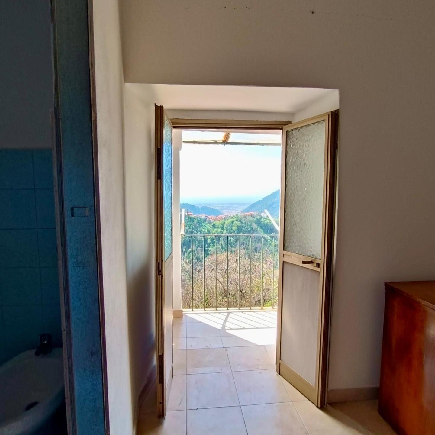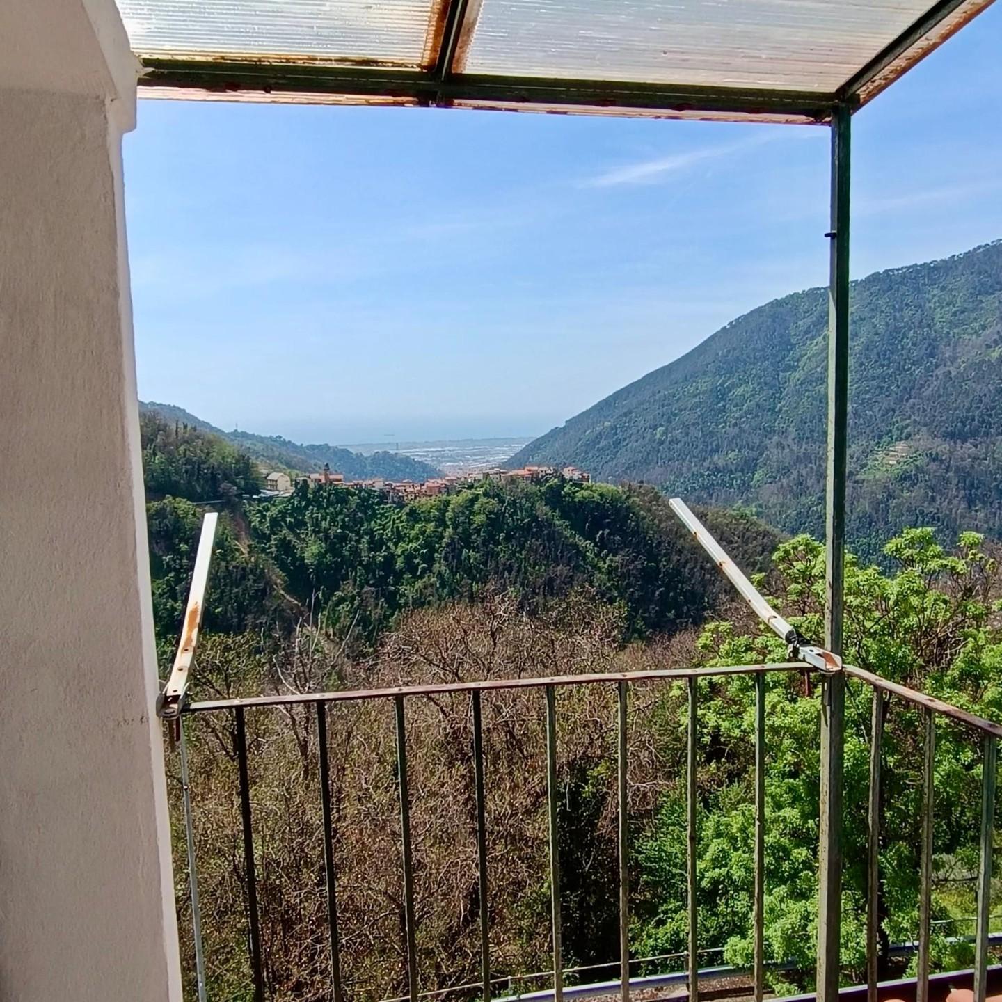 Dal piccolo balcone la vista spazia, attraverso le montagne, fino al mare.