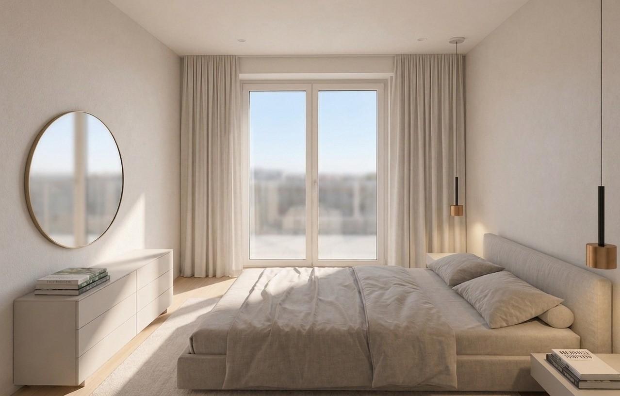 Camera matrimoniale con cabina armadi finestrata e balcone