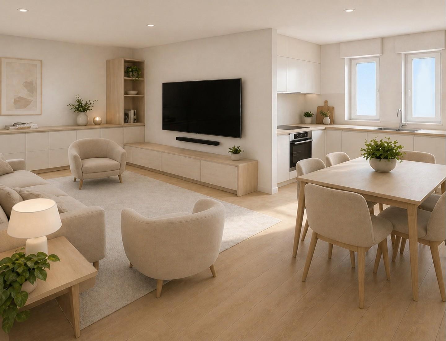 Soggiorno con cucina a vista e terrazzino