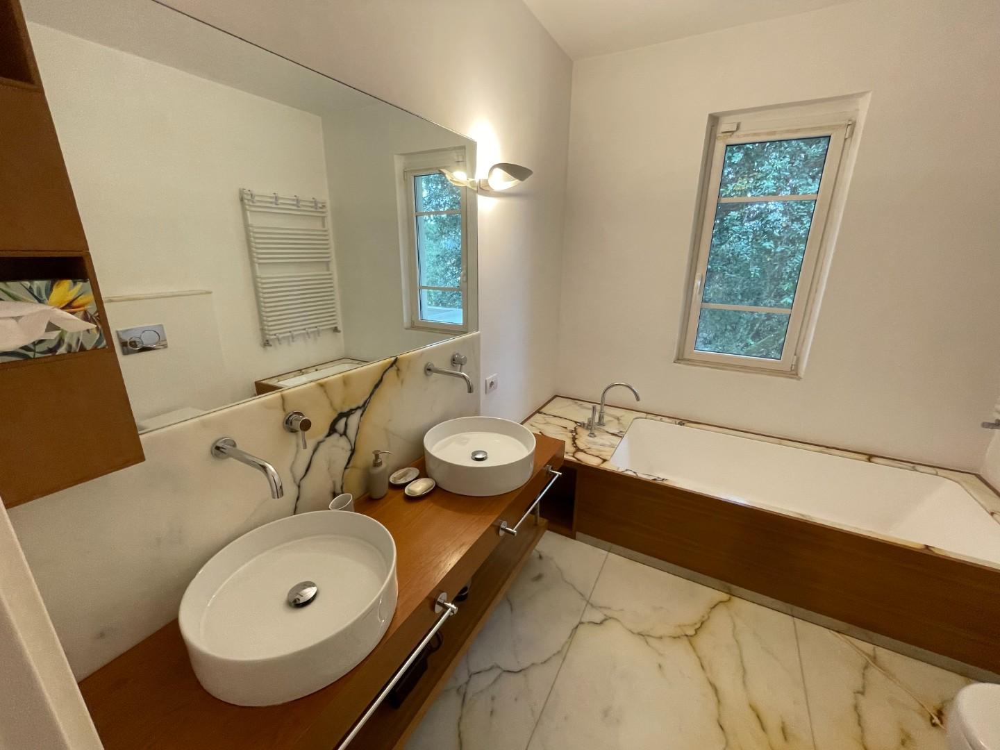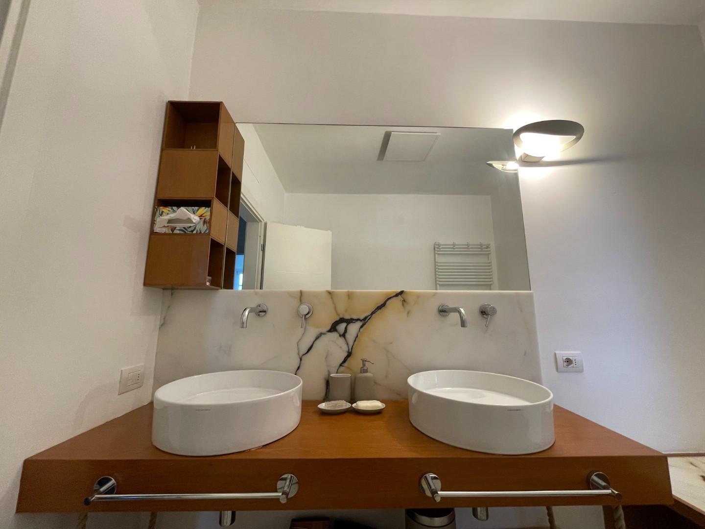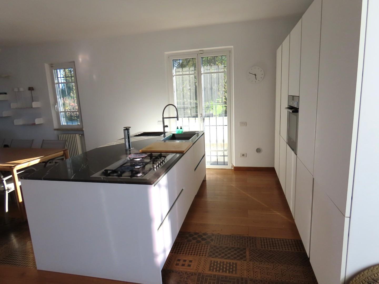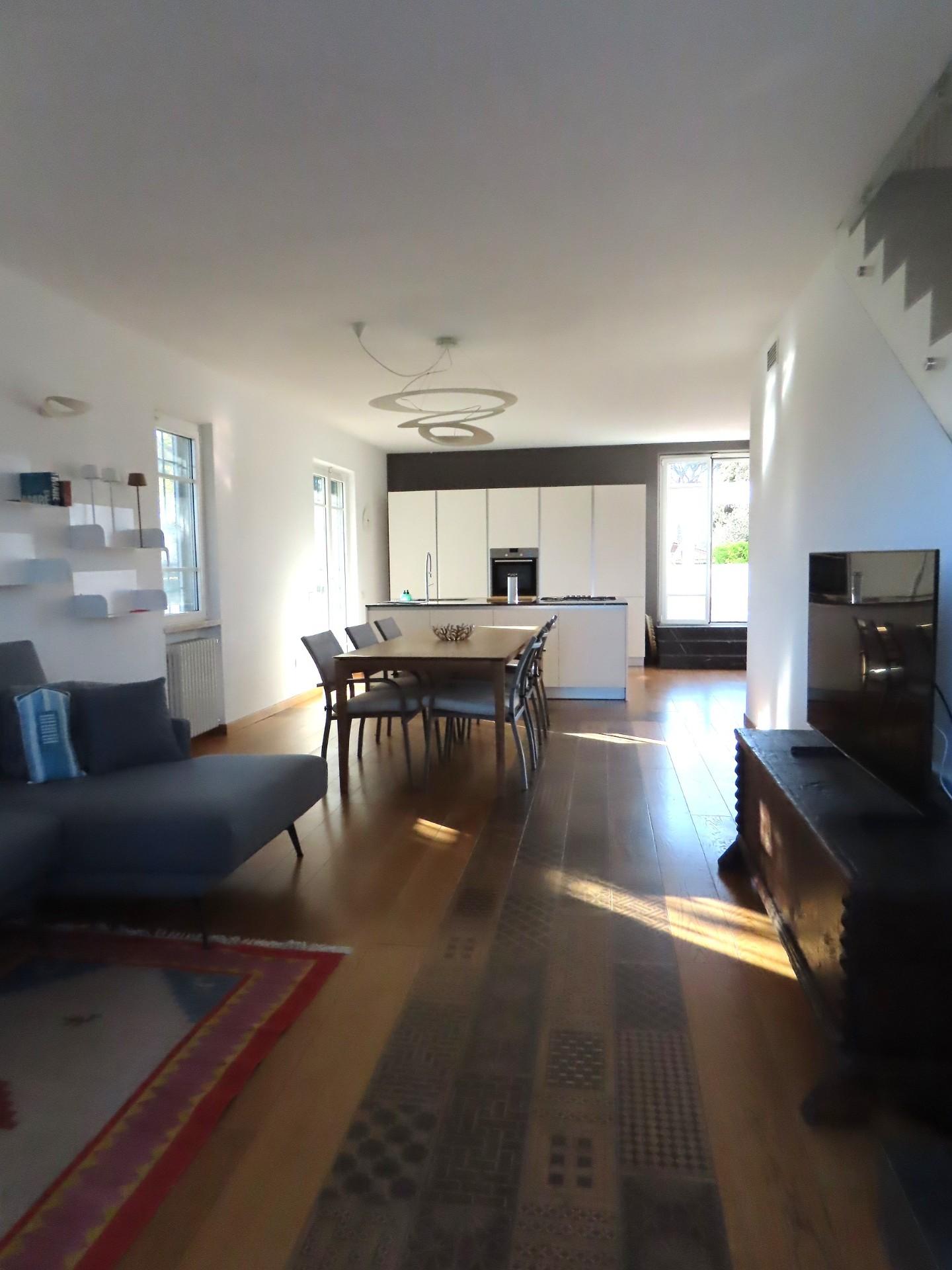 Le finiture sono di ottimo livello, con parquet in rovere, marmo e travertino. All’esterno, il parco privato di circa 1.500 mq comprende anche una terrazza in legno con ombrellone e due lettini, oltre a spazi per il tempo libero con salterello, porta da calcio e rete da pallavolo / badminton.