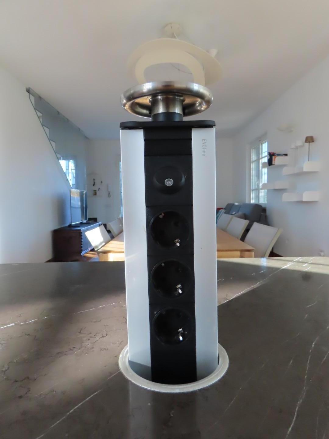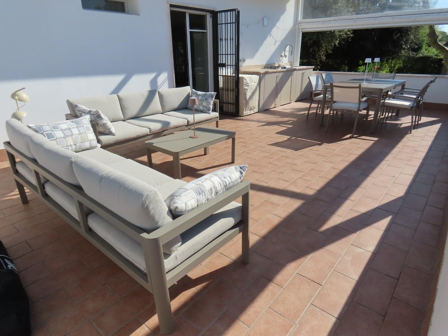 La zona giorno misura circa 50 mq ed è composta da un ambiente open space con cucina moderna a isola completamente attrezzata. La veranda di circa 40 mq, con copertura Arquati telecomandata, tavolo da 6, area lounge con due divani e barbecue elettrico, rende la casa piacevole anche per soggiorni più lunghi.