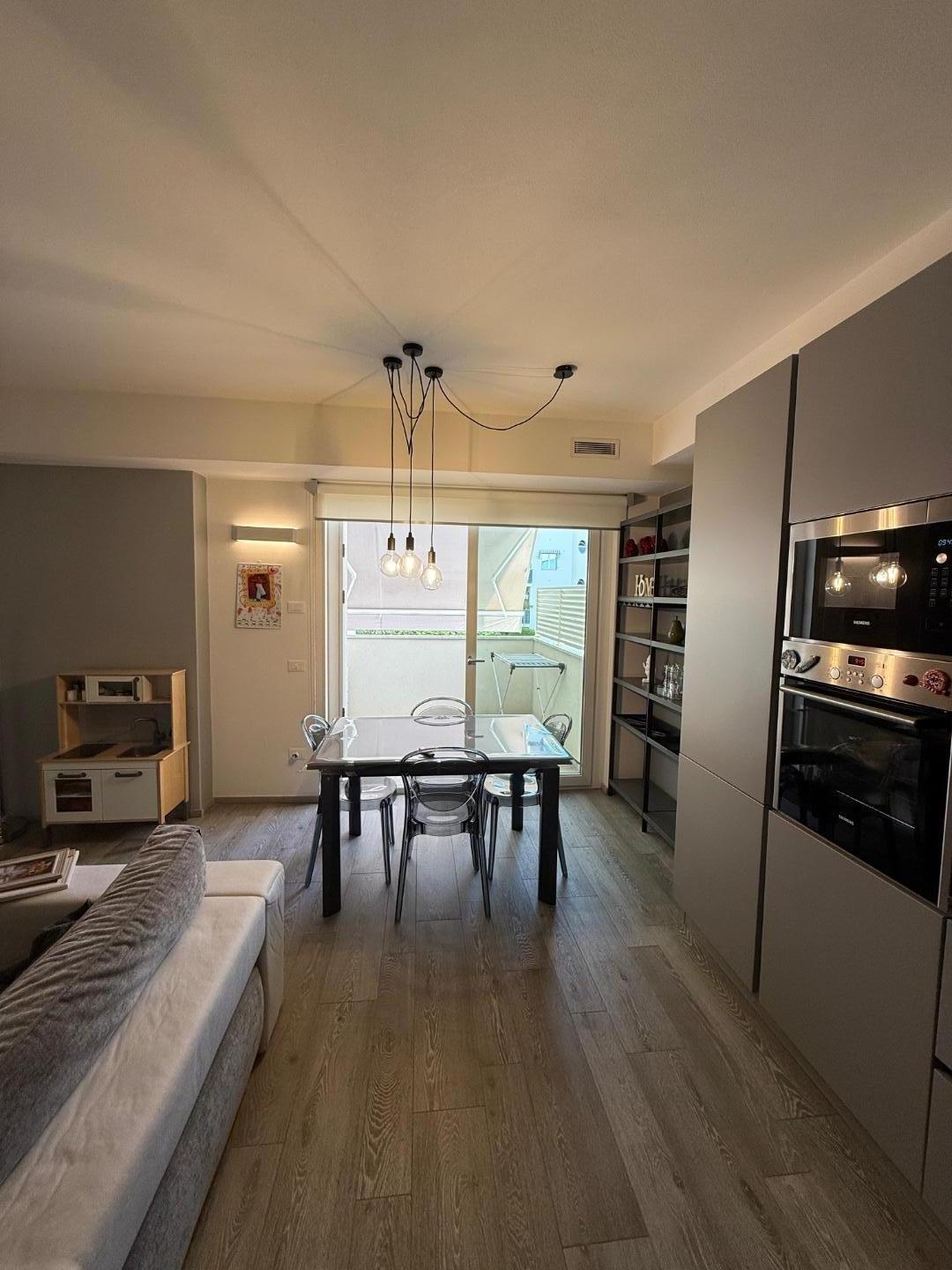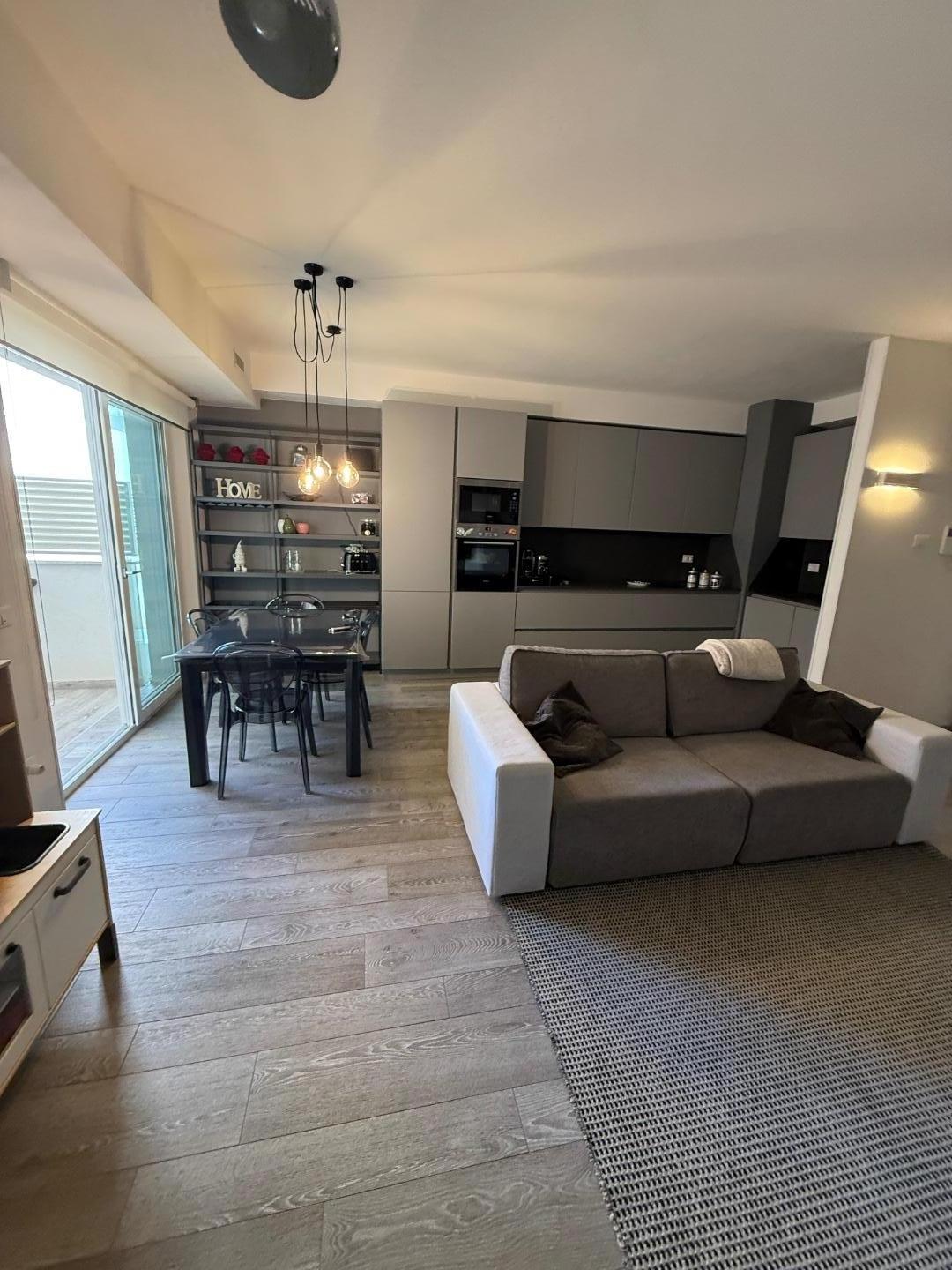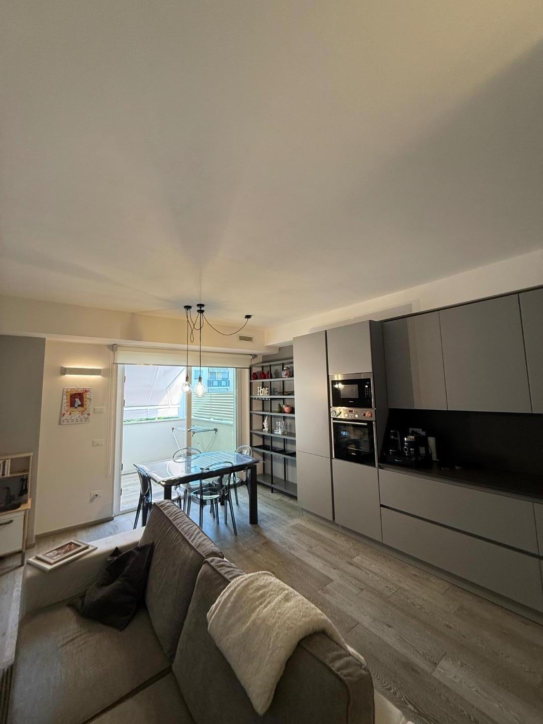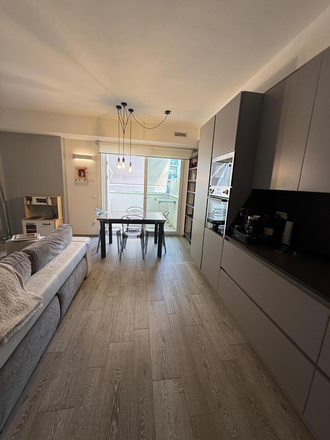 L'appartamento ben distribuito, viene venduto ammobiliato e rifinito in ogni dettaglio, si compone di: ingresso su ampia zona giorno con cucina a vista, con terrazza pranzabile; zona notte con ripostiglio con attacchi per eventuale lavanderia, due camere da letto con accesso a ampio balcone , doppi servizi finestrati
