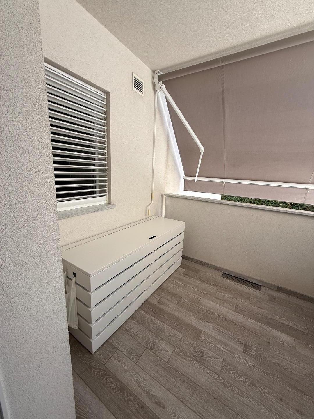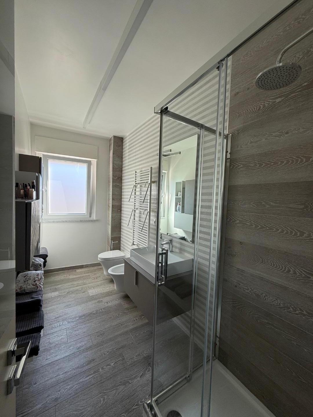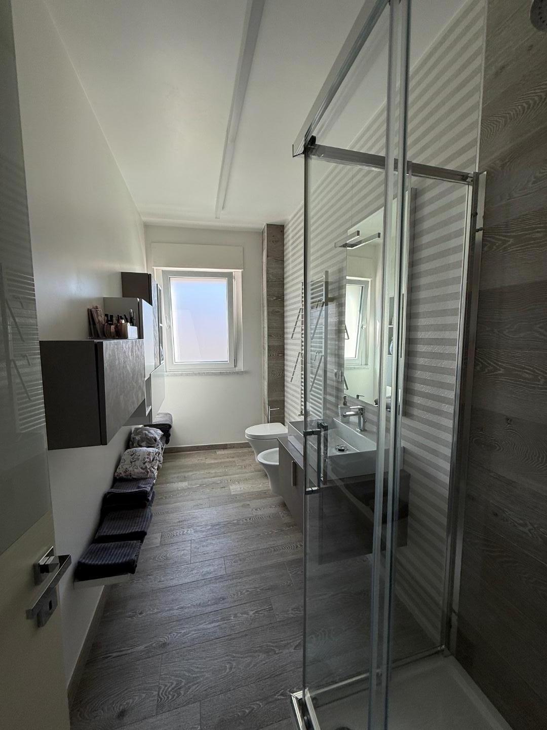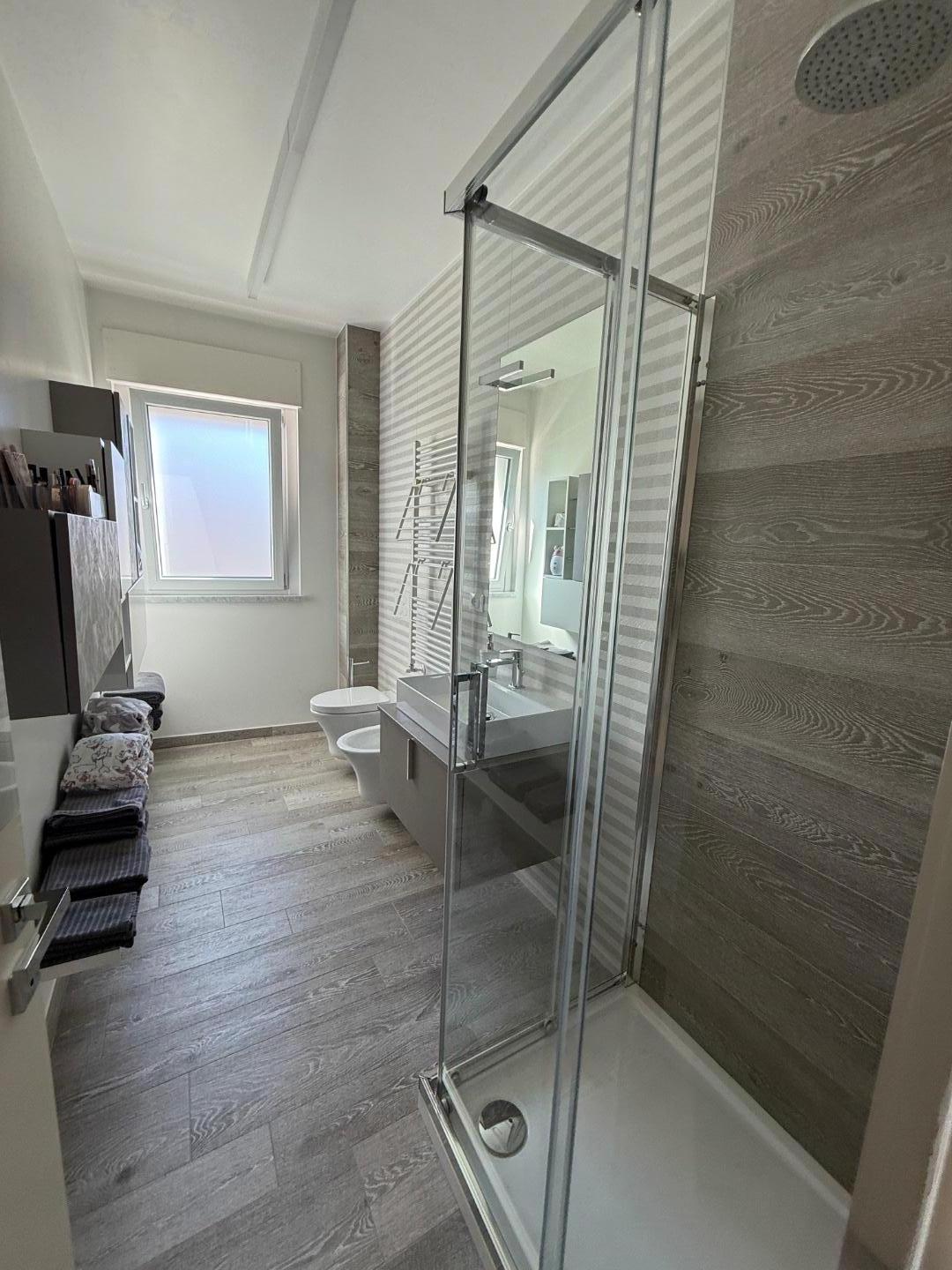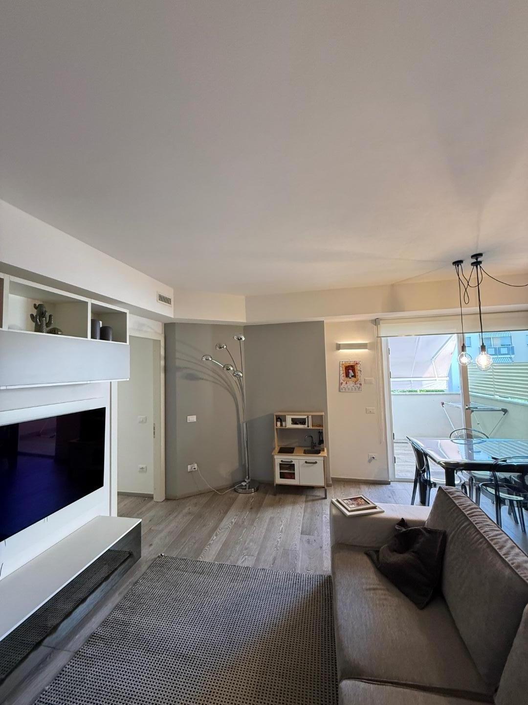 L'appartamento ben distribuito, viene venduto ammobiliato e rifinito in ogni dettaglio, si compone di: ingresso su ampia zona giorno con cucina a vista, con terrazza pranzabile; zona notte con ripostiglio con attacchi per eventuale lavanderia, due camere da letto con accesso a ampio balcone , doppi servizi finestrati